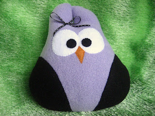 Here are two of my sweet owls. Fanny and Petunia. They are sisters. Petunia took after her dads side of the family. And Fanny took after her moms more plumpish side of the family. Both made from the same pattern. But with minds of their own. :)